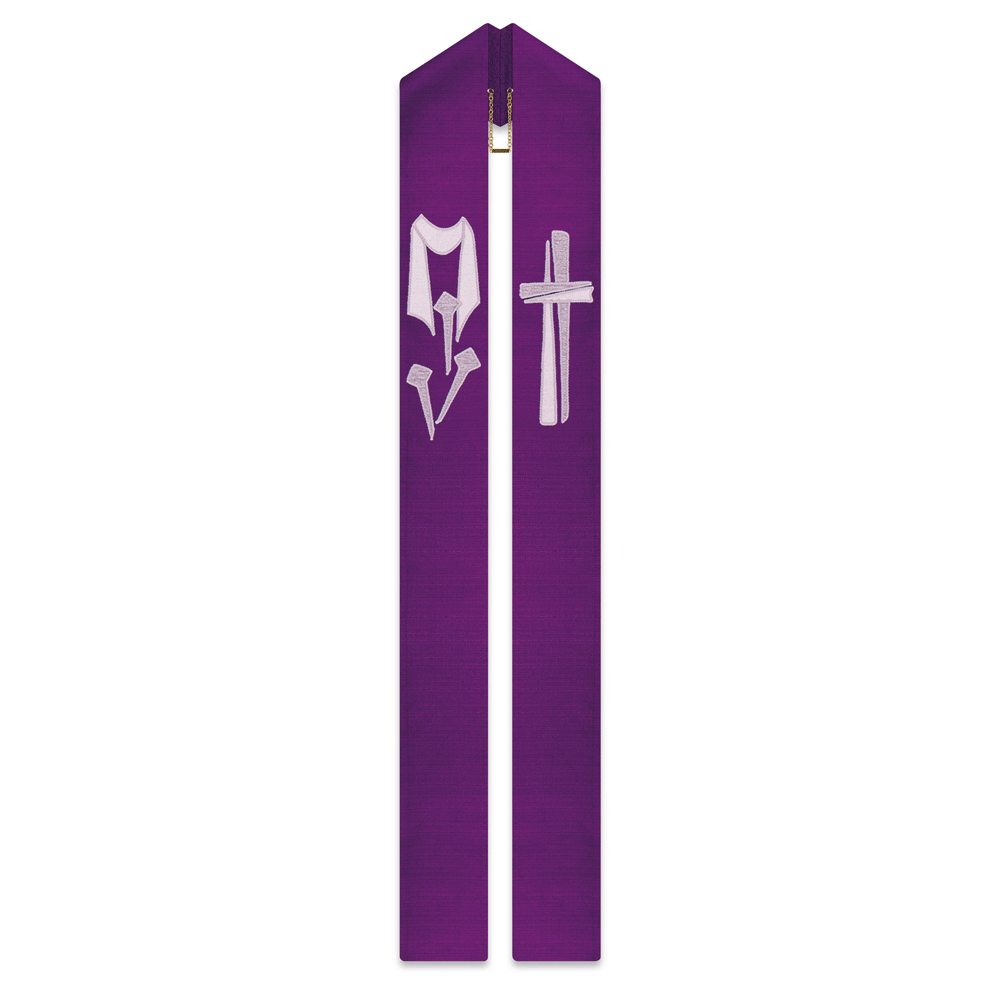 Overlay stole in purple Pius fabric with Lent design. Made by Slabbinck.