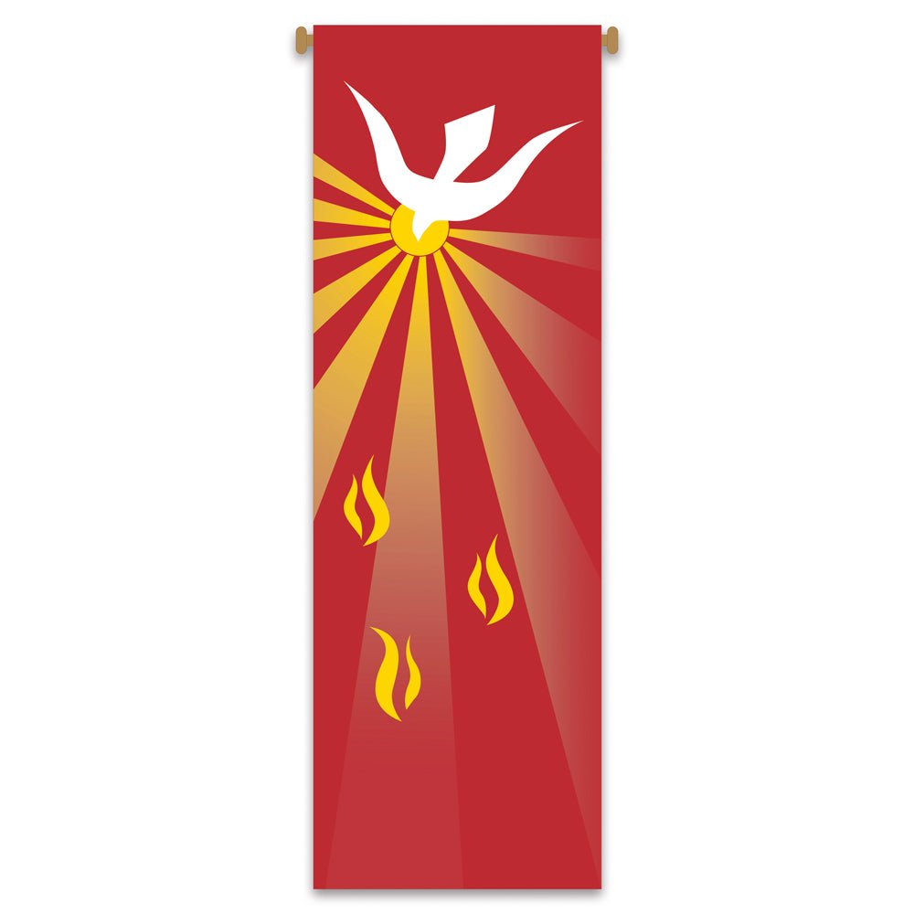 Creates a warm atmosphere, inspiring peace, quiet & prayer. Pentecost 'Flames' design. Comes complete with wooden rod and hanging cord and metal dowel incorporated in hem.
