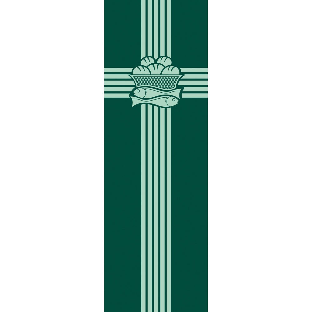Chasuble in Elias fabric, decorated with narrow orphrey and embroidered cross motif front and back. Unlined. Complete with chasuble stole. Plain 'O' neck. Made by Slabbinck.