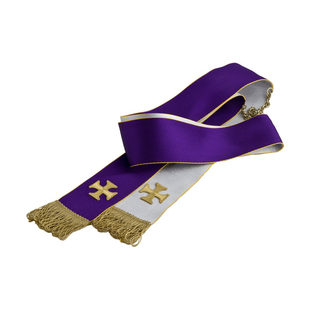 Chasubles in Pius fabric (100% man-made fibres) with roll collar and digital printed band featuring cross motif.