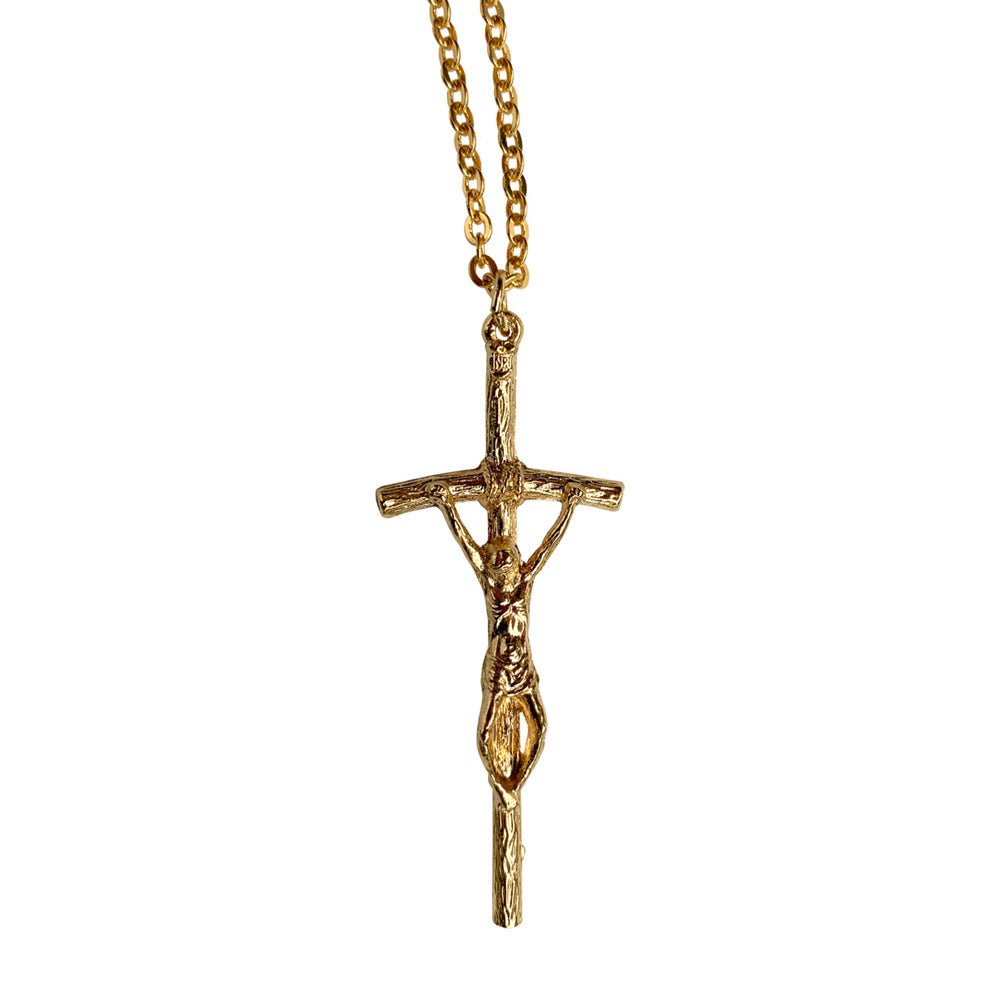 Metallic pendant pastoral cross, gilt, with chain. Supplied in gift box.2" high cross with 25" long chain.